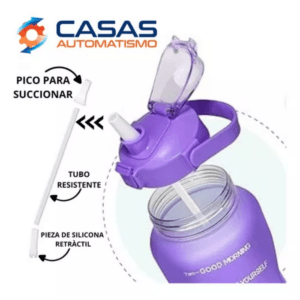 Cita motivacional y marcador de tiempo: con tiempos y citas inspiradoras únicas, esta botella de agua mide tu ingesta diaria y mantiene el camino con tus objetivos. Imprescindible para cualquier meta de fitness.