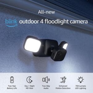 Funciona con Blink Outdoor para ofrecer una cámara con reflector LED inteligente alimentada por batería.