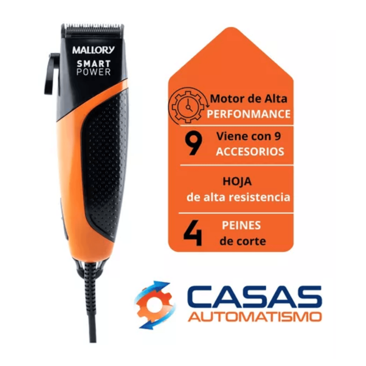 El Cortador de Pelo SMART POWER de Mallory con motor de alto rendimiento, cuchillas de alta resistencia y 4 peines guía de corte, ofrece toda la calidad de un peluquero en tu hogar.