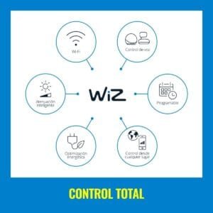 Temperatura del Color: 2200 K – 6500 K (luz cálida a luz fría).